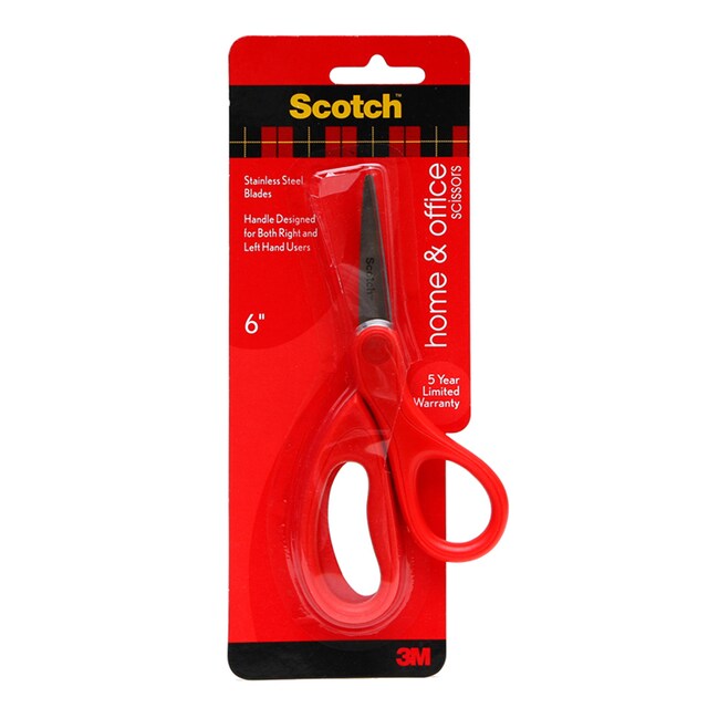 กรรไกร Scotch ขนาด 6 นิ้ว กรรไกรสำหรับงานทั่วไป ใบมีดทำจากสแตนเลส ไม่เป็นสนิม ทนทาน ตัดได้เรียบคม ด้ามจับพลาสติก จับง่ายกระชับมือ ใช้งานง่าย ใช้ได้ทั้งผู้ที่ถนัดมือซ้าย และมือขวา จะจับแบบไหนก็ถนัดมือ รับประกันคุณภาพ 5 ปี