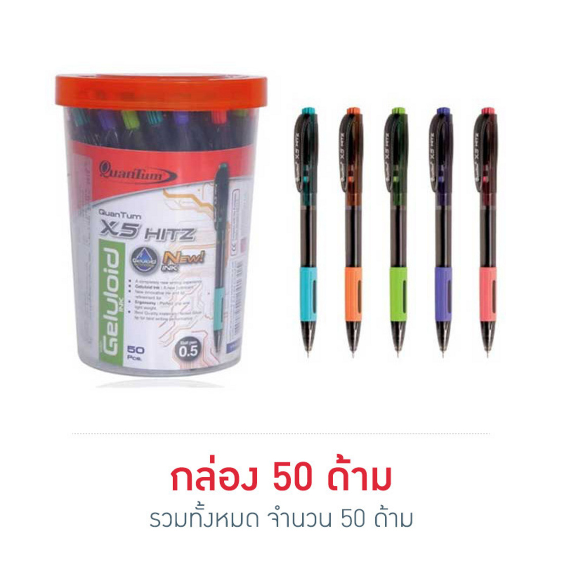 จำนวน ปากกาลูกลื่น 0.5 ควอนตั้ม (น้ำเงิน) 50ด้าม/กระปุก ชิ้น